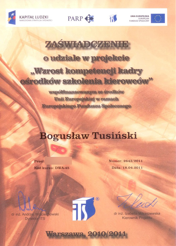 e-academy OSKTUSIŃSKI zaprasza na Certyfikat Kompetencji Zawodowych w przewozie drogowym osób i rzeczy!